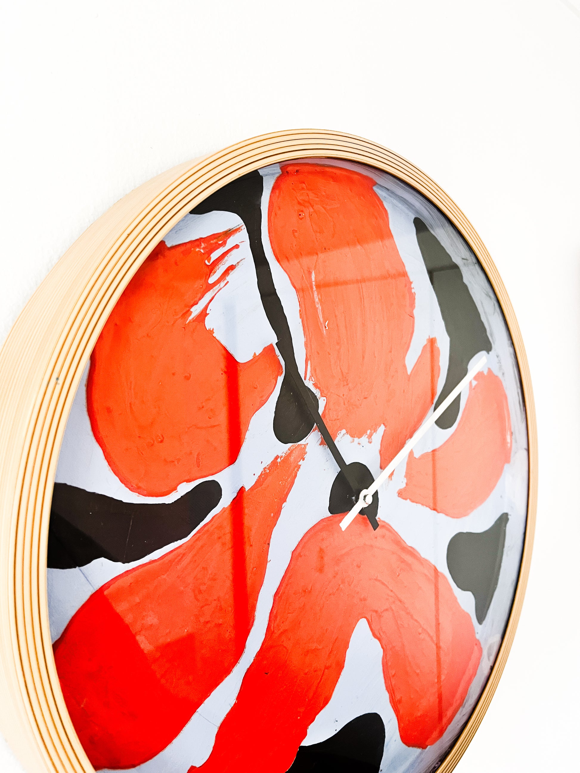 Inspired by uMakhulu’s beadwork, iNtombo ka Makhulu brings the rhythm of her hands to time itself. The bold reds and deep blacks echo the traditional beads she used most colours of strength, protection, and love. Each brushstroke feels like a memory stitched in motion, honouring the women who made beauty from fragments.